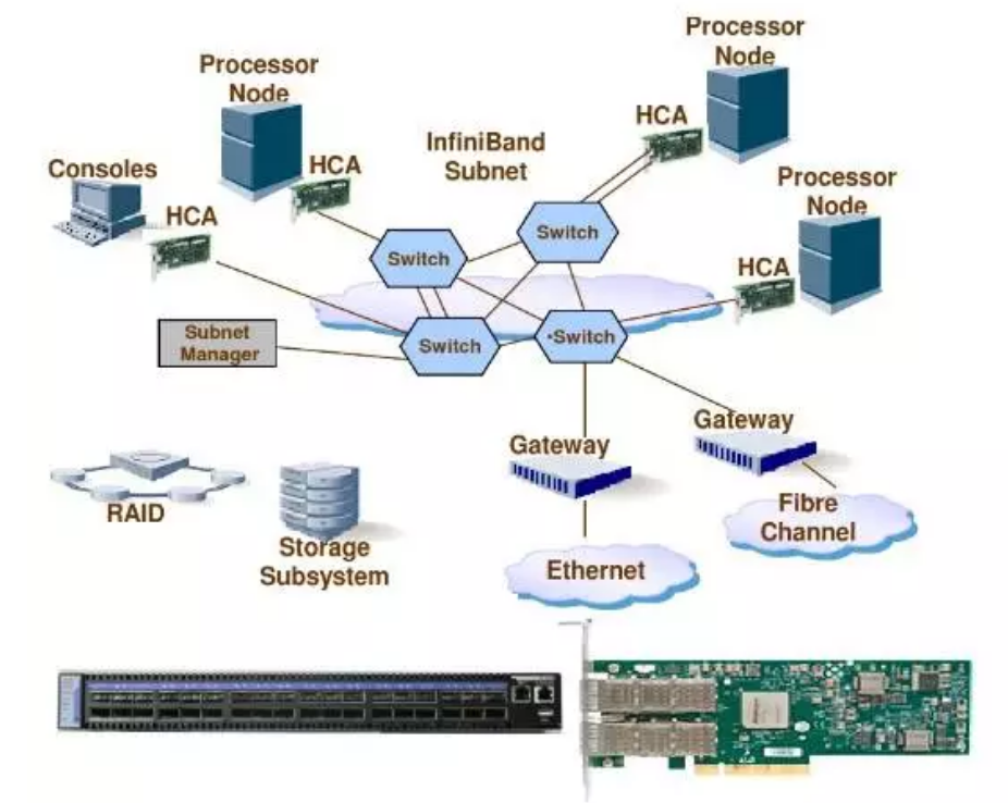 InfiniBand结构基于信道的串口替代共用总线,从而使I/O子系统和CPU/内存分离。所有系统和节点可通过信道适配器逻辑连接到该结构,它们可以是主机、适配器(HCA)或目标适配器(TCA),还包括InfiniBand交换机和路由器扩展,从而满足不断增长的需求。
