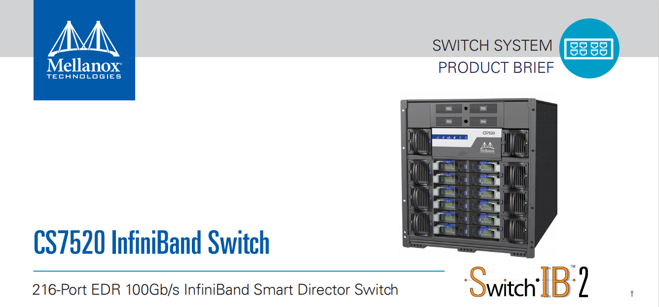NVIDIA 网络 MCS7520 提供世界上第一个智能交换机,通过共同设计可扩展的分层聚合和减少协议 (SHARP) 技术实现网络内计算。CS7500 系统通过提供 130Tb/s 的全双向带宽和 400n 端口延迟,提供 28U 外形系数中性能最高的织物解决方案。