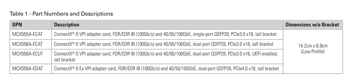 100Gb/s 英菲尼班德和以太网 (VPI) 适配器卡