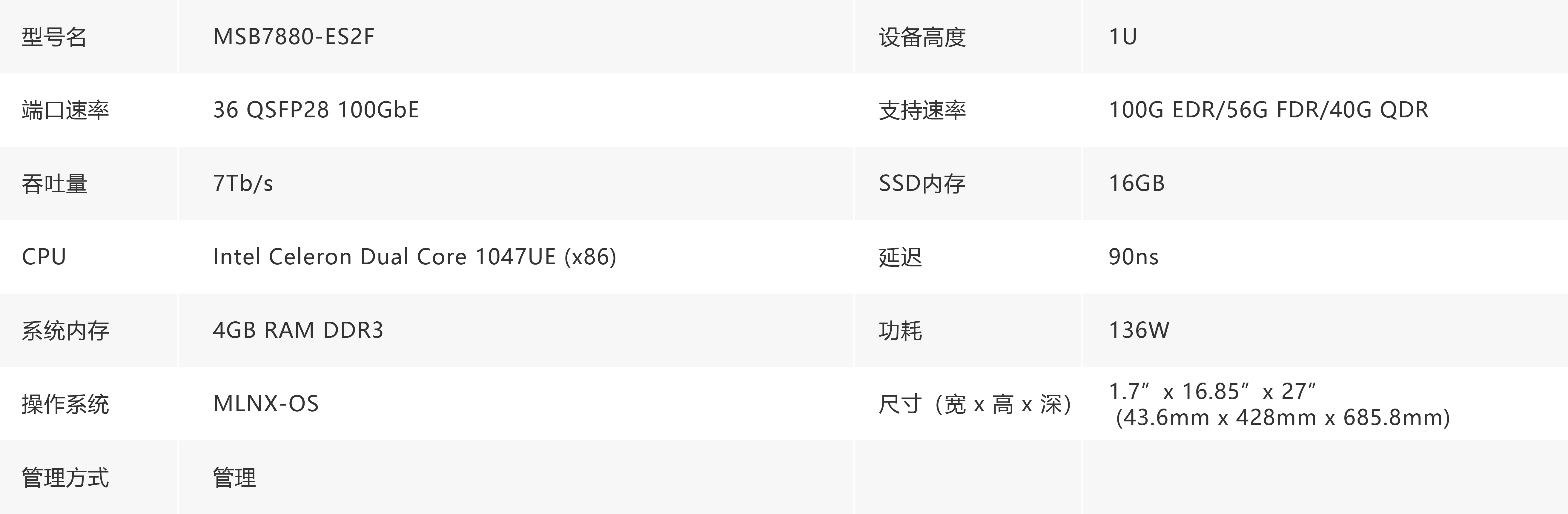 1U 系统中可达36 个 EDR 100Gb/s 端口